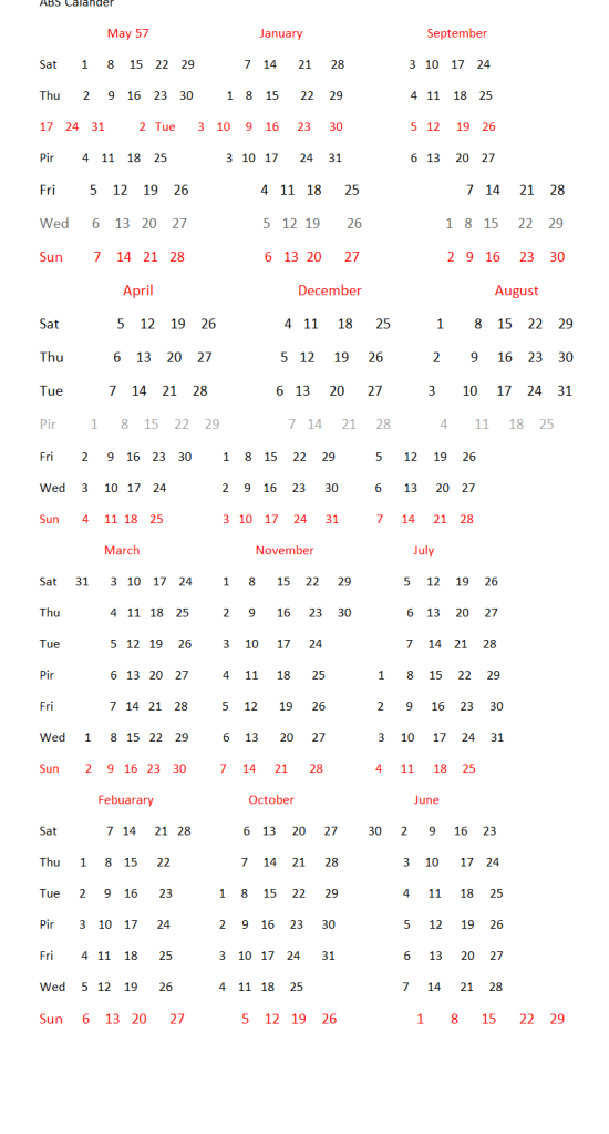Here is a A B S calander for your use.